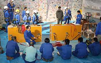 その取り組みとして、自社のトレーニングセンターを作り、高所作業技術と作業品質向上の研修プログラムを実施しています。